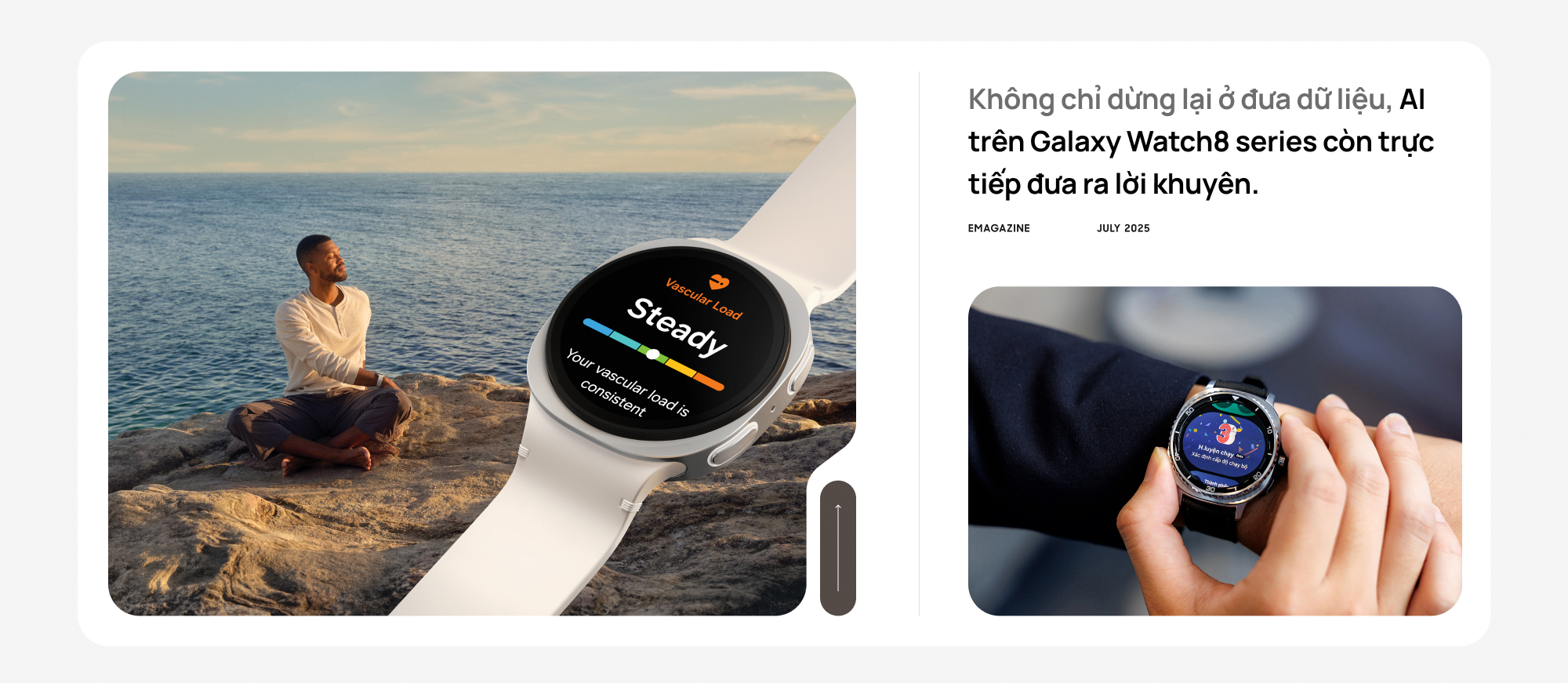 Điểm chung của các bước tiến này không nằm ở phần cứng, mà ở triết lý: dữ liệu sức khỏe phải dẫn đến hành động. Galaxy Watch8 series, bao gồm Galaxy Watch8 và Galaxy Watch8 Classic là hiện thân rõ nhất cho triết lý đó, hội tụ 3 yếu tố: thiết kế siêu thoải mái, hiệu năng mạnh mẽ và khả năng tương tác. Không chỉ đo và cảnh báo, mà còn đưa ra khuyến nghị cụ thể thông qua AI hội thoại, thông minh lần đầu tiên được tích hợp ngay trên đồng hồ và hỗ trợ tiếng Việt.