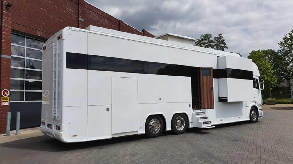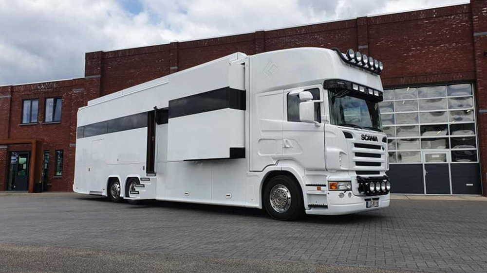 Cỗ máy tuyệt vời mà chúng ta nói đến ở đây không chỉ đơn thuần là một mẫu motorhome tiện nghi vì chính xác hơn thì nó giống như một khách sạn thu nhỏ di động. Phần đầu xe giúp người ta nhận ra rằng nó được chế tạo dựa trên xe đầu kéo Scania R480, đồng nghĩa nó là một sản phẩm chỉ dành cho thị trường châu Âu. Tuy nhiên ngoại trừ phần đầu xe tải đó ra, phía sau là một mái nhà với thân nhỏ bằng nhôm có đủ không gian cho ba phòng ngủ, một phòng tắm lớn, và thậm chí một garage kèm phân xưởng.