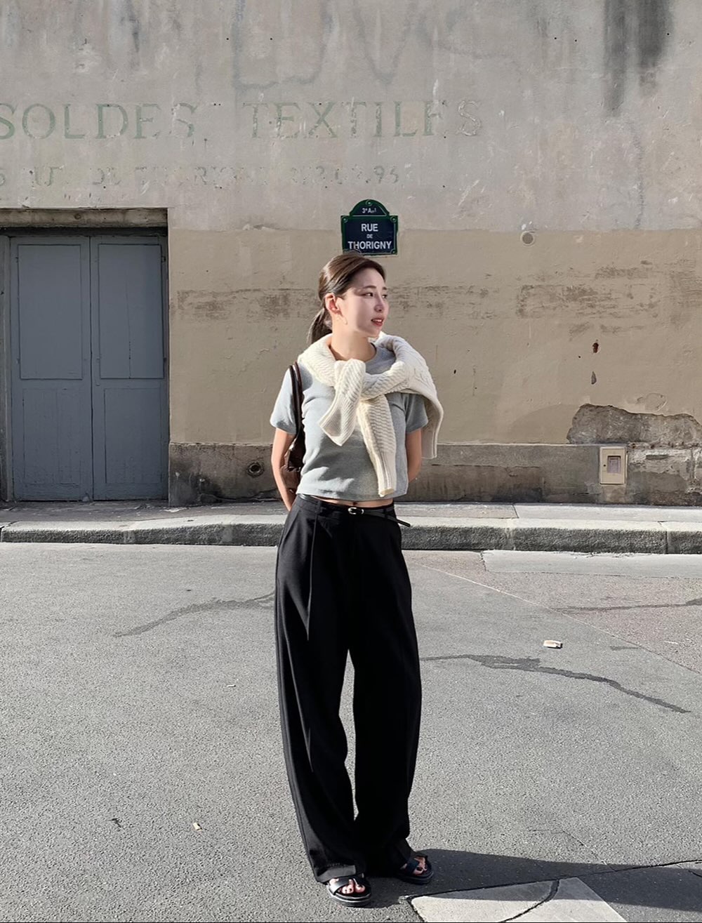 Một chiếc áo xám, đặc biệt là xám nhạt hoặc xám ghi, có thể tạo cảm giác tối giản nhưng cực kỳ tinh tế. Gam màu này cũng mang hơi hướng thời trang thành thị, giúp tổng thể trang phục trông trưởng thành và có gu hơn.