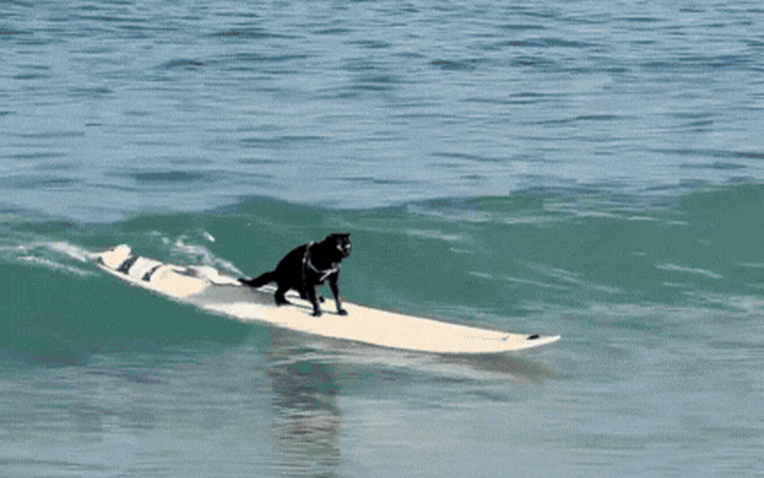 Đoạn video đang nhận được sự quan tâm của nhiều người đã ghi lại khoảnh khắc chú mèo làm quen với bộ môn thể thao vốn chỉ dành cho những người ưa mạo hiểm. Trong đoạn clip chú mèo được một chuyên gia lướt sóng cẩn thận đặt lên ván, sau đó nương theo cơn sóng rồi đẩy đi. Chú mèo đứng trên ván rất vững khiến nhiều người xung quanh kể cả chủ của chú mèo hò reo cổ vũ. Theo chia sẻ chú mèo đen dạn dĩ này có tên là Pop-up, một cái tên được đặt theo đúng thuật ngữ chỉ động tác đứng lên ván trong bộ môn lướt sóng.