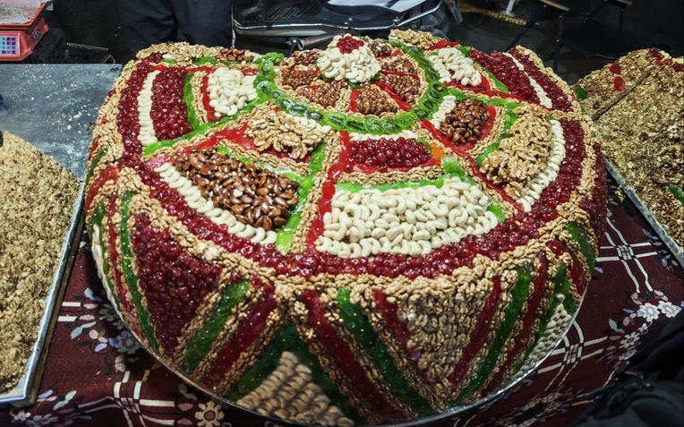 Bất cứ ai lần đầu nhìn thấy xe bán bánh cắt Tân Cương cũng đều phải thốt lên trầm trồ vì sự kích thích thị giác quá lớn mà nó mang lại. Khác hẳn với những loại bánh kẹo thông thường, món này được bày biện như một công trình nghệ thuật, là sự kết hợp của hàng tá loại nguyên liệu bổ dưỡng như hạt óc chó, nho khô, vừng, táo đỏ và vô số loại hạt rừng quý hiếm khác, tất cả được kết dính lại bằng mật nha vàng óng, lấp lánh dưới ánh đèn đường hoặc nắng sớm.