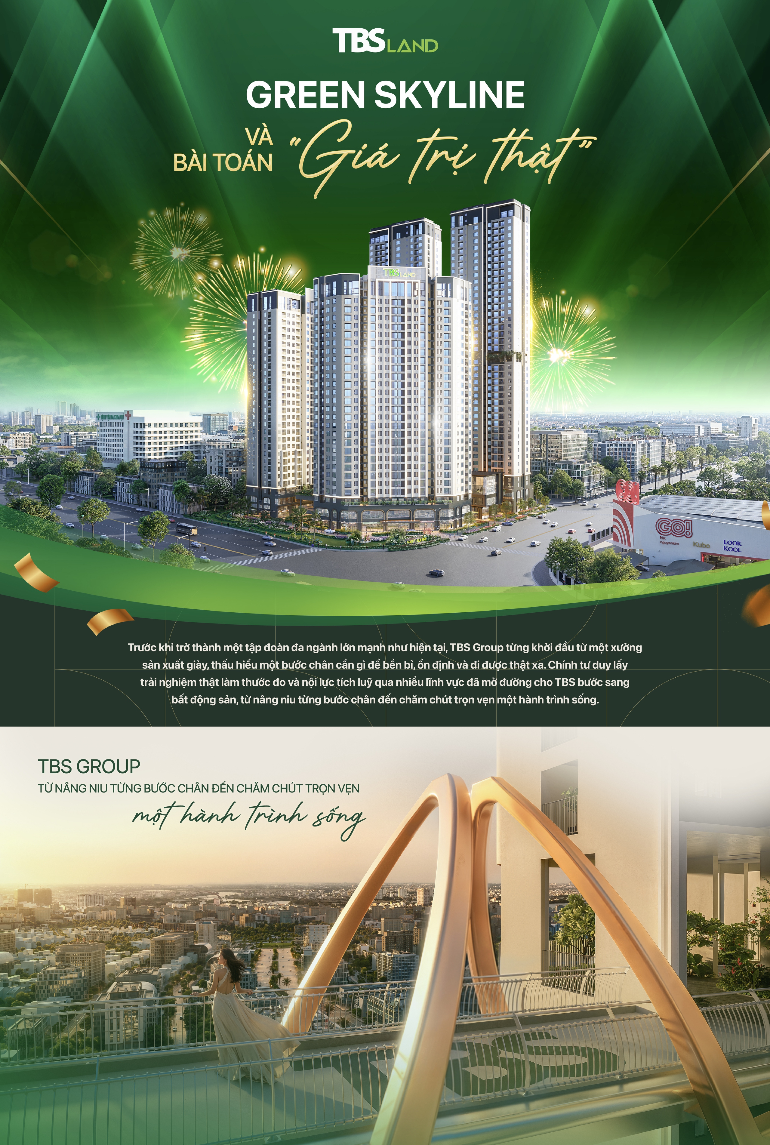 Từ đôi giày êm ái nâng đỡ những bước chân vững chãi, đến xây dựng một môi trường sống đủ tốt để con người sống xứng tầm, an tâm với trải nghiệm thật, trân trọng giá trị thật, hành trình của TBS Group là sự phát triển rất tự nhiên. Khi bất động sản không còn là cuộc chơi của quy mô hay hình ảnh, mà trở thành cam kết dài hạn với chất lượng sống, Green Skyline được đặt đúng vào vị trí đó, như một dấu mốc cho thời điểm nội lực đã đủ sâu, năng lực đã đủ chín để TBS Land ra mắt dự án dân dụng đầu tiên.