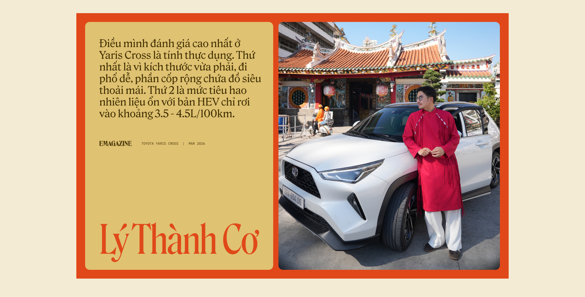 Tôi biết đến Lý Thành Cơ nhờ những blog về cẩm nang du lịch Nhật Bản của anh, quốc gia mà anh dành một tình cảm đặc biệt và đã đi lại tới hàng chục lần. Và có lẽ cũng là một sự hữu duyên, trong những ngày đầu xuân Bính Ngọ tôi lại được dịp gặp gỡ và trò chuyện cùng anh về mẫu xe mà anh chọn đồng hành Tết này, Toyota Yaris Cross bản HEV - chiếc xe cũng đến từ đất nước Mặt trời mọc.