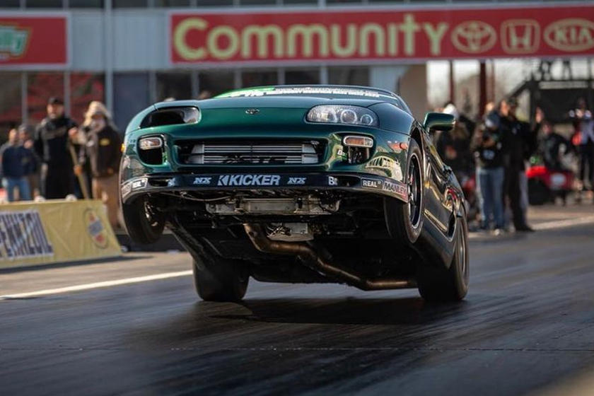 Chiếc xe chúng ta thấy trong video được gọi là “Yoda Supra”, đặt theo nhân vật kinh điển trong “Star Wars” và phù hợp lớp sơn màu xanh lá cây bên ngoài. Jared Holt là người cầm lái chiếc xe, và nó từng đặt thành tích 7,29 giây ở sự kiện trước. Đặt mục tiêu đạt kết quả tốt hơn, đội ngũ bước vào sự kiện lần này và lập nên thời gian chạy thử ấn tượng chỉ 7,5 giây mà không cần nitơ giúp sức, thay vào đó họ dùng một bộ tăng áp 8685 Precision với lực đẩy 50 psi.