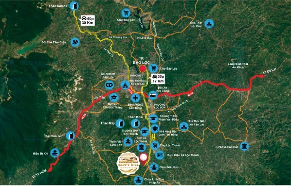 Happy Hill là dòng sản phẩm đất nền triển khai theo mô hình compound mang  giá trị dịch vụ nghỉ dưỡng theo phóng cách sống “tự cung tự cấp”, xu hướng ngày càng được các gia đình trẻ ưa chuộng thời gian qua. Sản phẩm đất nền Happy Hill tọa lạc tại khu vực xã Lộc Thành, huyện Bảo Lâm, có tổng diện tích khoảng 15.775 m2 với quy mô hạn chế tầm 42 nền đất diện tích tầm 139m2 – 271m2. Đây là sản phẩm phát triển theo mô hình du lịch nghỉ dưỡng sinh thái hiếm hoi được Công ty BĐS Gia Phát triển khai, có mức giá chào bán vào khoảng 4 triệu đồng/m2. Dự án có mật độ xây dựng chỉ khoảng 40%, quỹ đất còn lại, chủ đầu tư tập trung phát triển hàng loạt hệ thống tiện ích dịch vụ chất lượng cao như công viên cây xanh, các công trình công cộng phục vụ khu dân cư gồm hồ bơi, khu sinh hoạt cộng đồng, khu tiệc nướng ngoài trời, Homestay…100% sản phẩm của Happy Hill đều có sổ hồng riêng từng nền và được quản lý vận hành bởi Công ty Nam Việt Bảo Lộc, đơn vị uy tín trong vận hành các dự án du lịch, nghỉ dưỡng tại Lâm Đồng.