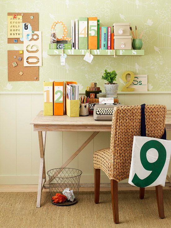 Trang trí góc học tập cho bé với cây xanh, mang đến sự hứng thú, nguồn năng lượng tích cực cho bé.