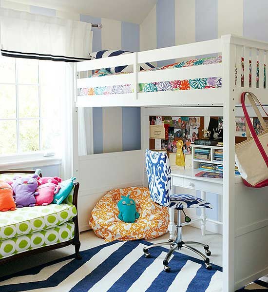 Sử dụng giường gác xép tạo nơi học tập và nghỉ ngơi cho bé trong phòng ngủ.