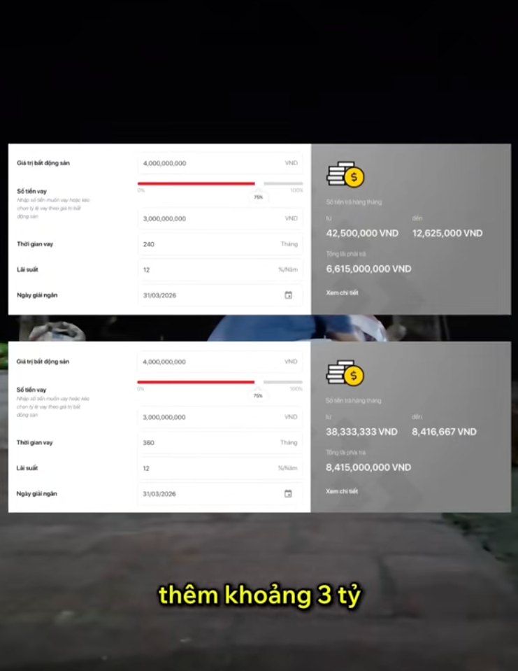 "Để nhẹ hơn khoảng 5 triệu mỗi tháng thì mình phải trả thêm gần 3 tỷ tiền lãi và bán thêm khoảng 10 năm tuổi trẻ cho ngân hàng" - anh B chia sẻ.