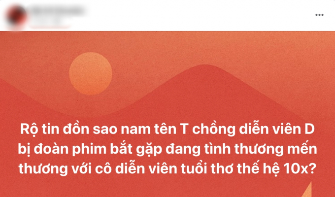 Chiều 31/07, mạng xã hội xuất hiện những bài đăng đồn đoán nam diễn viên T - chồng của ngôi sao D đang ngoại tình