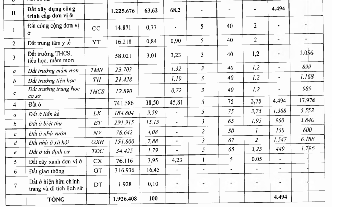 Trong 1.225.676m2 đất đơn vị ở được chia thành 5 nhóm ở gồm: