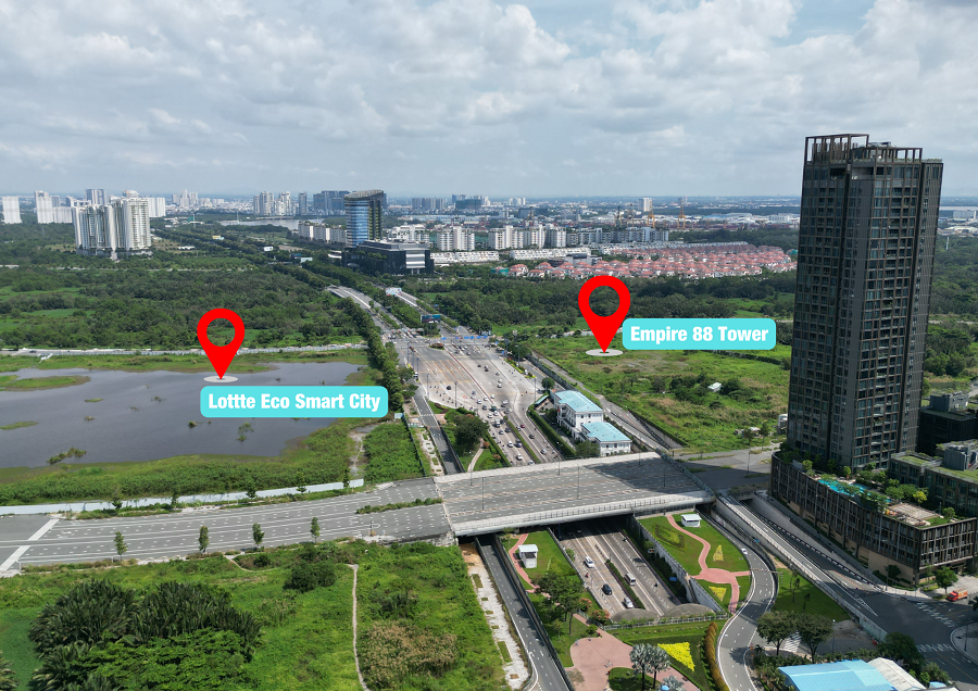 Nằm đối diện Empire 88 Tower qua đại lộ Mai Chí Thọ là một khu đất rộng lớn khác cũng đang được rào chắn nhưng chưa thi công. Đây chính là khu đất của dự án Khu phức hợp thông minh Lotte Eco Smart City Thủ Thiêm có vốn đầu tư gần 1 tỉ USD của Tập đoàn Lotte (Hàn Quốc).