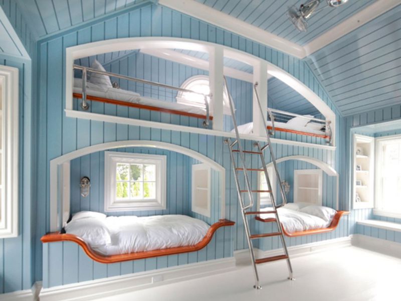 Thiết kế phòng ngủ có gác lửng kiểu phá cách sẽ đem đến cho bạn một cảm giác mới mẻ chưa từng có, như đang ở trên một khoang tàu nào đó và thực hiện chuyến du ngoạn trên biển. Gam màu trắng chủ đạo mang lại cảm giác sạch sẽ và không gian phòng ốc được thông thoáng, rộng rãi hơn.