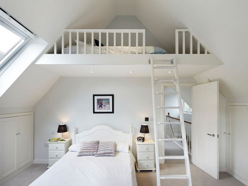 Thiết kế phòng ngủ có gác lửng đơn sắc sẽ hợp với những ai chuộng sự đơn giản, không cầu kỳ trong việc trang trí nội thất. Khi tận dụng được không gian ở trên gác xép để có thêm một phòng ngủ nữa, thì dù phải ngủ chung với mọi người trong phòng, bạn vẫn sẽ thấy dễ chịu, an tâm không bị làm phiền lúc đi ngủ.
