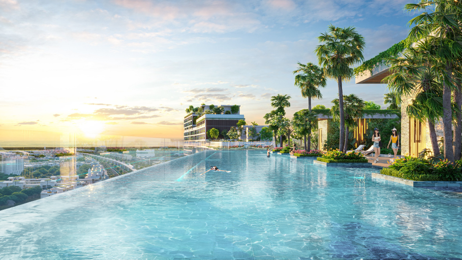 Hồ bơi vô cực tầng thượng đầu tiên tại Nhơn Trạch rộng 850m2 với chiều dài hơn 50m cho skyview toàn cảnh ấn tượng