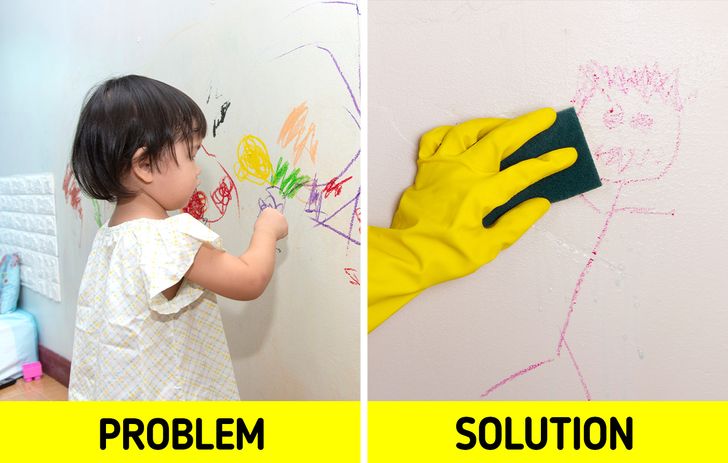 Khi trang trí phòng ngủ của trẻ, bạn nên nhớ rằng, các bức tường không chỉ phải đẹp mà còn phải đủ khả năng chống lại bất cứ thứ gì mà một đứa trẻ có thể tác động lên đó. Sơn Vinyl, giấy dán tường có thể lau chùi bằng nước, hoặc một lớp ván lót phía dưới chân tường là những ý tưởng đáng để bạn tham khảo, áp dụng. Nếu không, bạn có thể phải đầu tư nhiều hơn vào việc sửa chữa căn phòng.