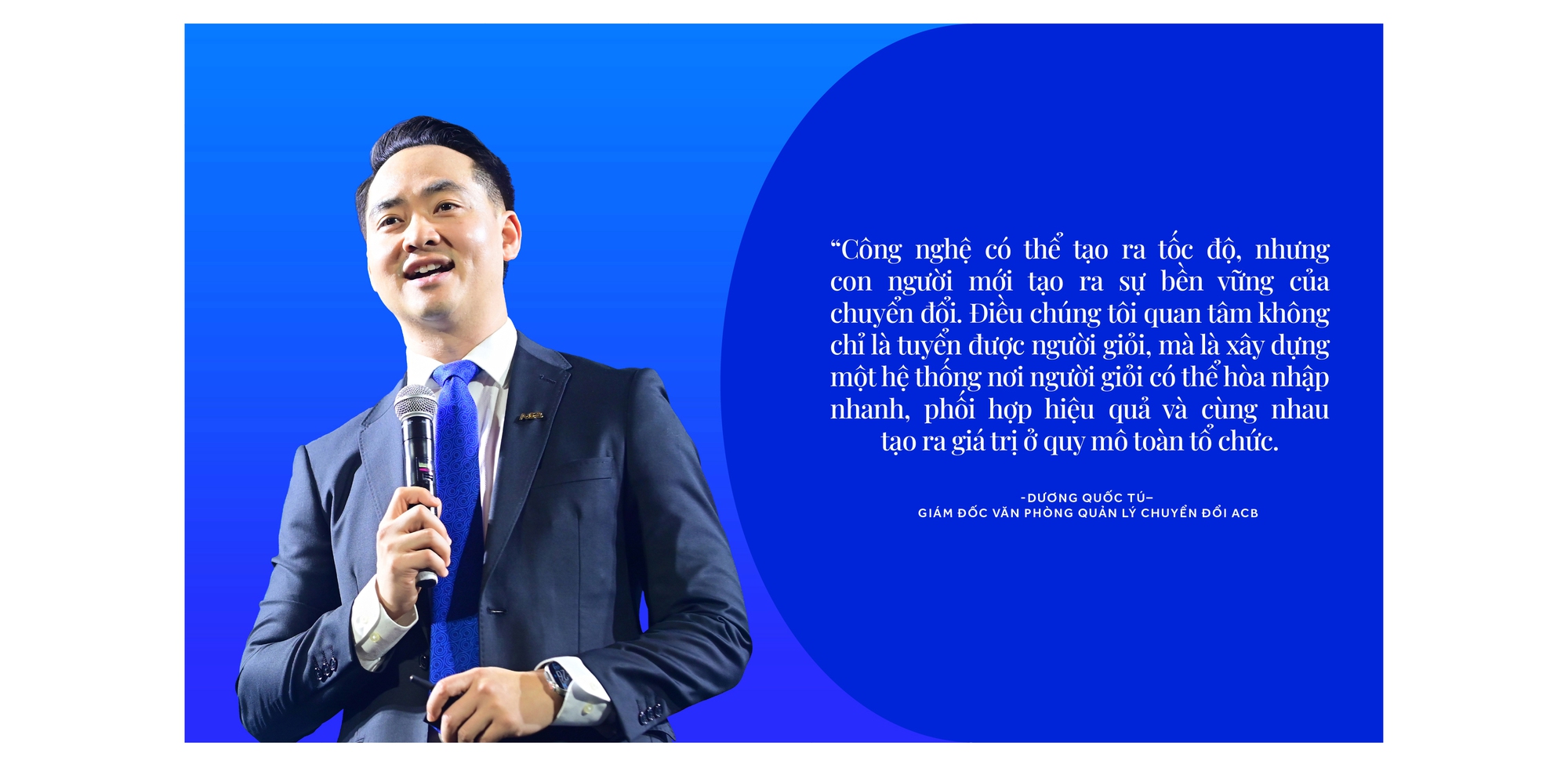 Trong 6 tháng qua, ACB đã huy động khoảng 200 nhân sự cho chương trình chuyển đổi, đồng thời thu hút các chuyên gia cao cấp từ trong và ngoài nước, triển khai các chương trình đào tạo lãnh đạo và xây dựng cơ chế phối hợp liên phòng ban. Mục tiêu không chỉ là có người giỏi, mà là xây dựng một tổ chức nơi con người có thể phối hợp hiệu quả và tạo ra giá trị ở quy mô lớn. Ở góc độ này, con người không chỉ là nguồn lực, mà là yếu tố quyết định khả năng hiện thực hóa chiến lược.