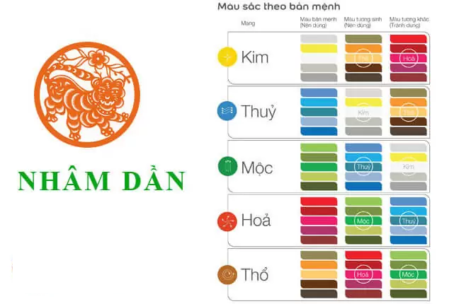 Theo từng mệnh trong phong thủy ngũ hành thì tuổi Dần hợp với những màu sắc khác nhau.
