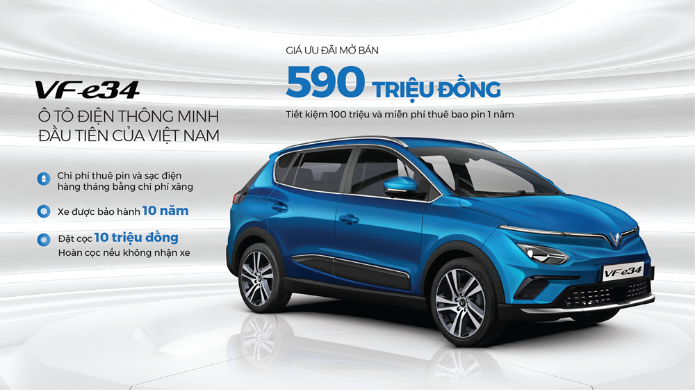 Theo thông báo, VinFast VF e34 nhận cọc 10 triệu đồng cho mẫu xe này và dành ưu đãi lớn cho những khách hàng đặt sớm. Cụ thể, khách hàng mua xe VF e34 trước ngày 30/6/2021 sẽ được giảm 100 triệu đồng, chỉ còn 590 triệu. Bên cạnh đó, người đặt sớm còn được miễn phí thuê pin tiêu chuẩn trong 1 năm (tương đương 17,4 triệu đồng).