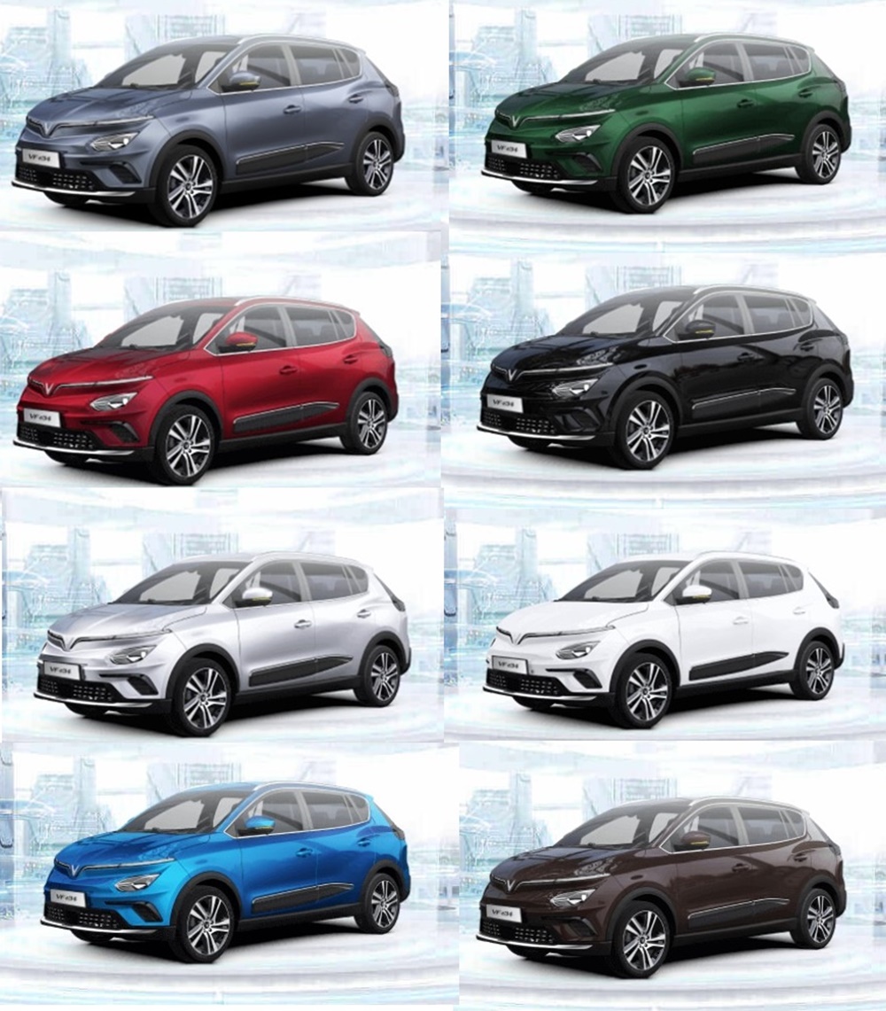 Mẫu xe VinFast VF e34 có 8 màu sắc tùy chọn cho khách hàng tham khảo bao gồm: Xanh lá cây, xanh dương, nâu, ghi, đen, đỏ, trắng, xám.