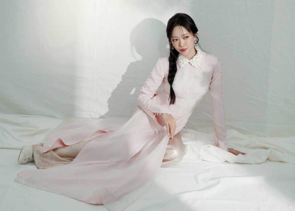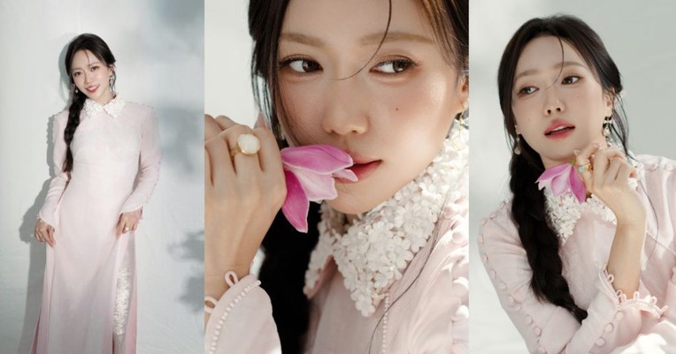 Gia nhập “đường đua” áo dài Tết năm nay, Diệu Nhi chọn hình ảnh nữ tính bất ngờ. Theo đó, cô mặc áo dài tông hồng pastel với kiểu dáng cổ bẻ lạ mắt. Thiết kế trơn đơn giản nhưng với phần cổ đính kết, tay cài nút lại khiến người mặc trở nên nổi bật. Để phù hợp với trang phục áo dài, Diệu Nhi lựa chọn tóc dài tết lệch một bên, tôn lên gương mặt thanh tú cũng như dịu dàng của người phụ nữ.