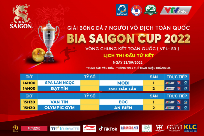 Xác định 4 cặp tứ kết sân chơi 7 người toàn quốc VPL-S3