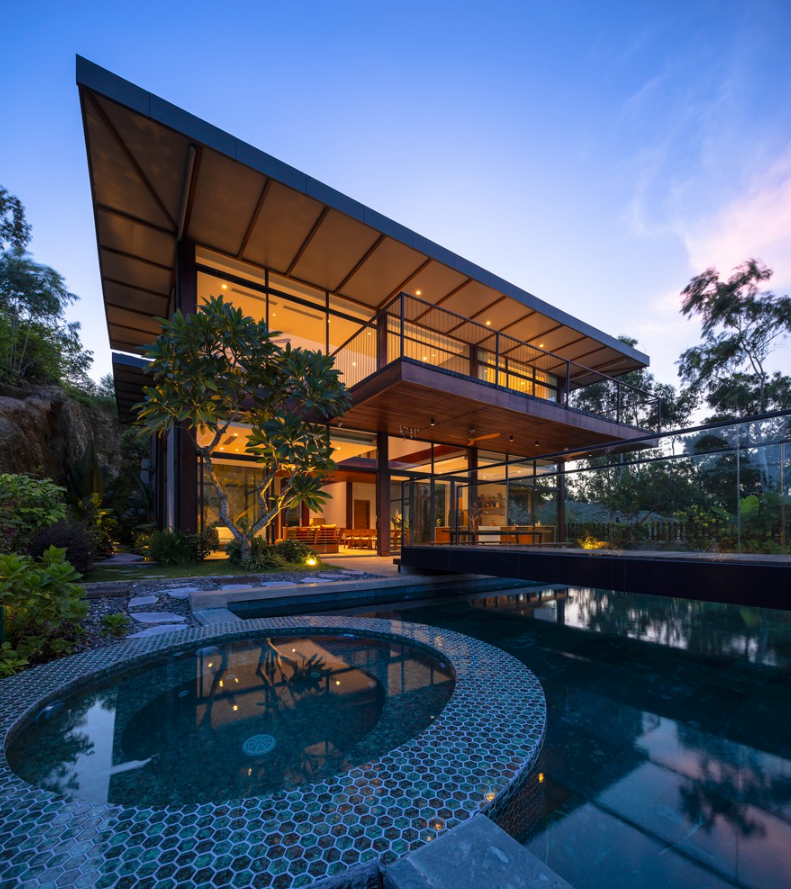 Tuy ngôi nhà được xây trên địa hình dốc đứng với cảnh quan ấn tượng nhưng cũng chính là thách thức dành cho kiến trúc sư. Mong muốn của chủ đầu tư là có một không gian sống mở hướng đến thiên nhiên và mang cảm giác riêng tư hài hòa với cảnh quan xung quanh.