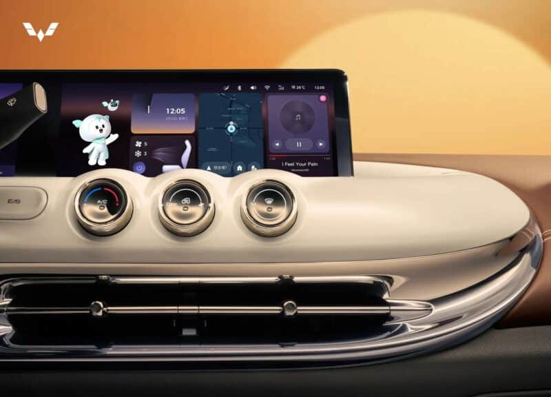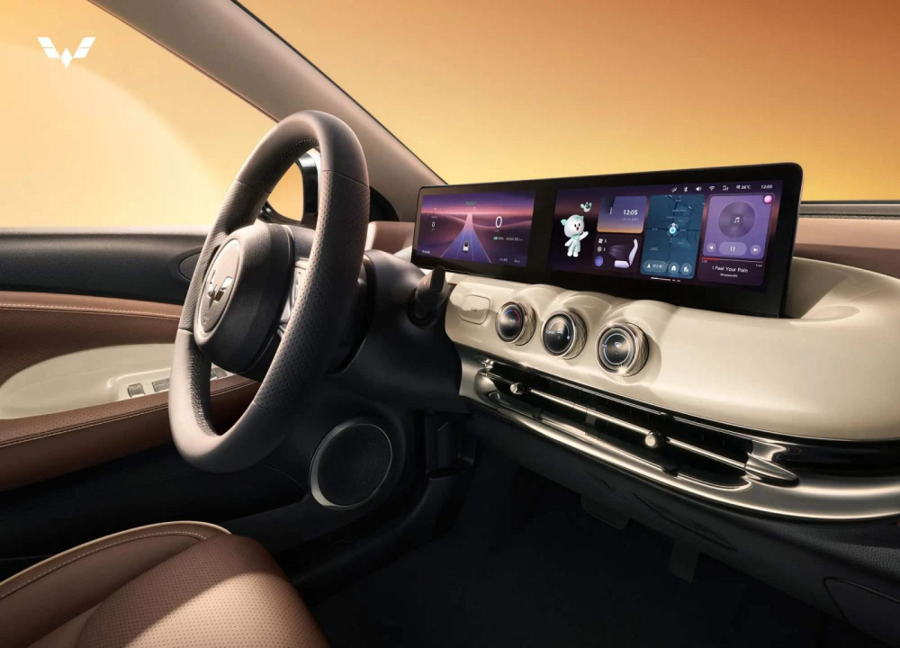 Ngoài các tùy chọn trên, Wuling Bingo 2023 cũng gây ấn tượng khi có 4 chỗ ngồi với ghế được bọc da nhìn rất sang trọng, tiếp đến là việc xe có trang bị phanh tay điện tử, hộc đựng cốc giữa 2 ghế ngồi và phía trên cùng là nút chọn chế độ lái, bảng điều khiển nổi bật với màn hình đôi, với bảng điều khiển và hệ thống thông tin giải trí ở giữa. Có một trợ lý kỹ thuật số theo phong cách hoạt hình. Phía dưới màn hình có 3 nút bấm để điều khiển điều hòa.