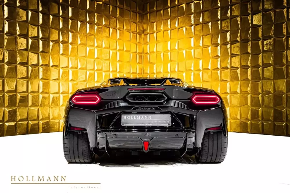Chiếc siêu xe này sở hữu lớp sơn đen bóng và kẹp phanh màu xanh lá cây chanh, tạo sự hài hòa giữa ngoại thất và khoang lái sống động, bắt mắt. Nội thất được thiết kế theo phong cách đen và xanh lá cây chanh, cùng một số tính năng nổi bật bao gồm hệ thống nâng mũi xe, phanh gốm carbon, gói hỗ trợ đỗ xe, giá để cốc, màn hình hiển thị cho hành khách, hệ thống âm thanh Sonus Faber, bọc da và da lộn, hệ thống mở cửa không cần chìa khóa, đèn pha LED, cảm biến đỗ xe, hệ thống kiểm soát hành trình, ghế chỉnh điện có sưởi và thông gió, và nhiều tiện ích khác.