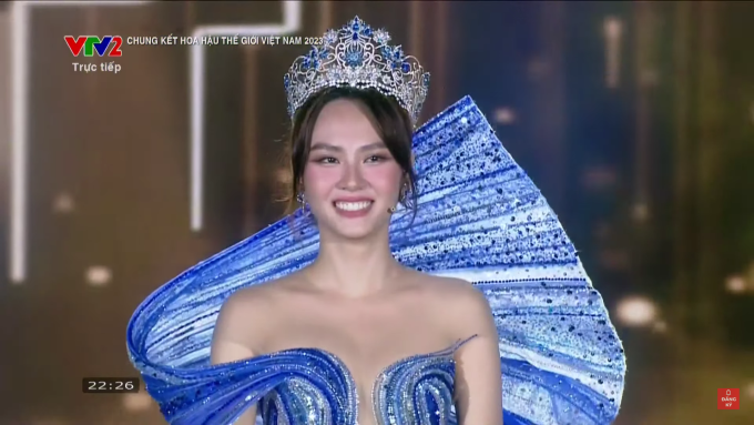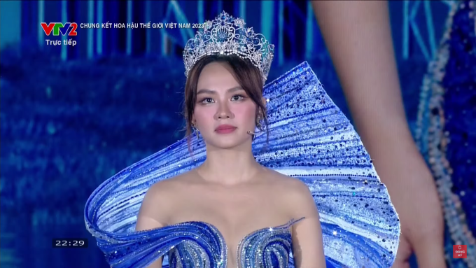 Đương kim hoa hậu Mai Phương trong chiếc váy Final Walk tại chung kết Miss World Vietnam 2023.
