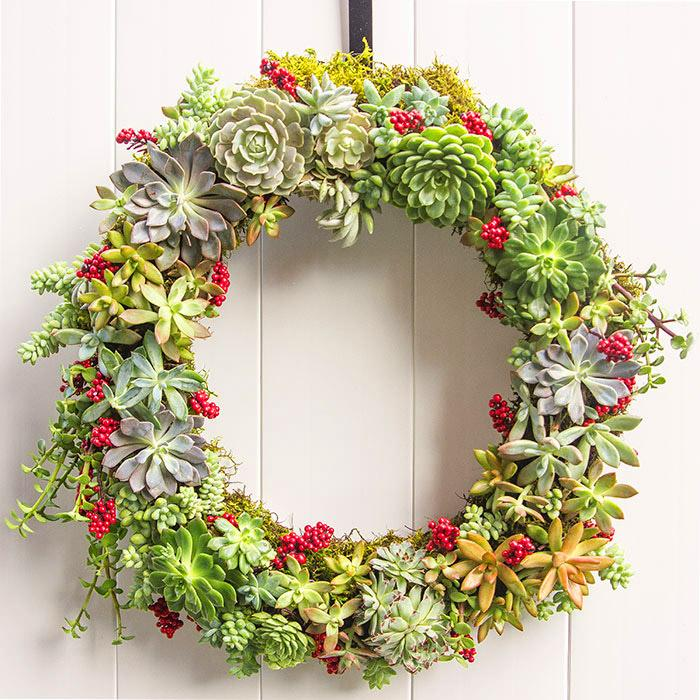 Vòng hoa được trồng kết hợp từ nhiều loại sen đá khác nhau, cùng với những gam màu sắc khác nhau tạo nên một không gian ấn tượng.