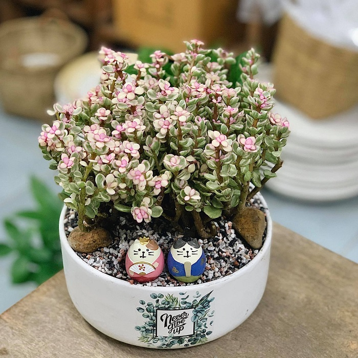 Sen đá được trồng kết hợp với các loại cây khác với kiểu dáng và kích thước khác nhau mang đến một bức tranh hoàn mỹ.