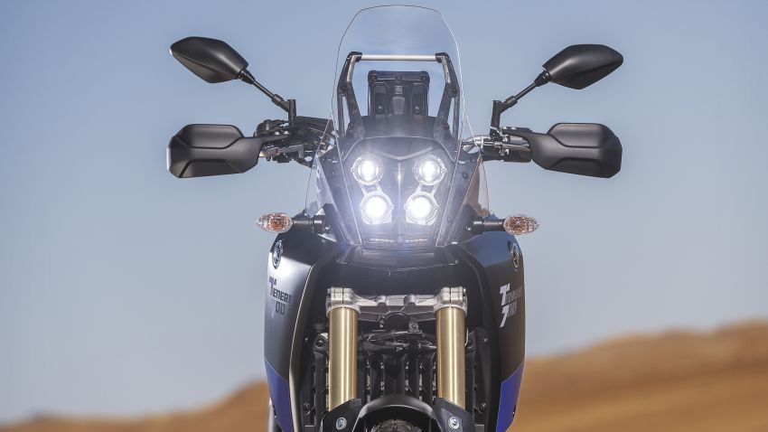 Mang phong cách Adventure Rally, Yamaha Tenere 700 có ngoại hình cực bụi bặm cùng kiểu dáng tương tự như những chiếc Rally chuyên nghiệp thi đấu ở giải Dakar Rally. Điều này thể hiện rõ qua kiểu dáng xe gọn gàng và cao ráo. Đầu xe được đẩy lên cao với cụm đèn pha 4 bóng led dạng projector, phía trên là kính chắn gió cao và bảng đồng hồ LCD đơn sắc phía sau.